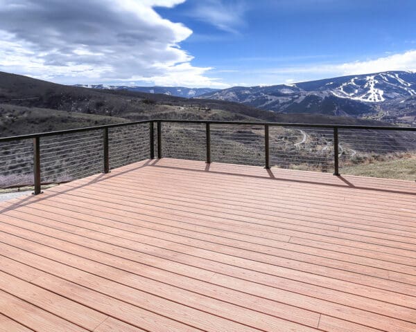 Our black aluminum system serves as an ideal frame for Colorado winter mountains resting in the background. Even with our thicker 3/16" cables, this system provides little obstruction for viewers to gaze in awe at the mountains' beauty.