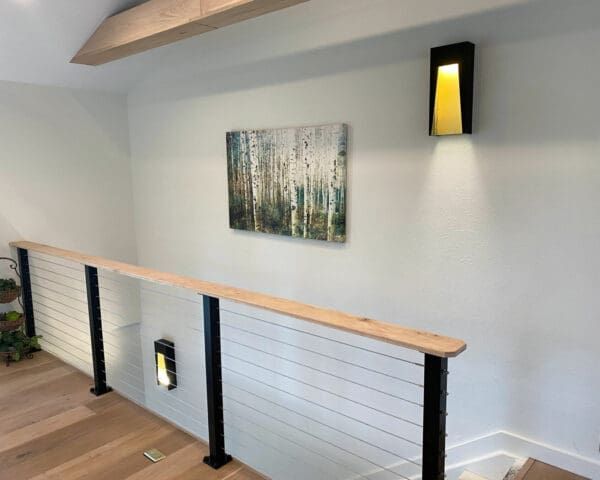 Thanks to our 2x4 base plates, customers have the ability to mount their own desired wood. Which helped this customer in Colorado match their wood top rail with the wooden floors and exposed beam.