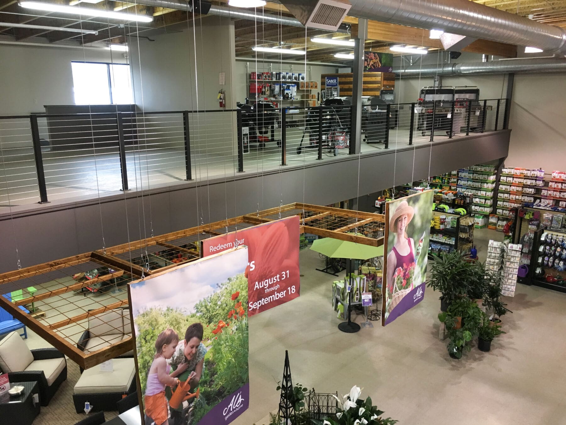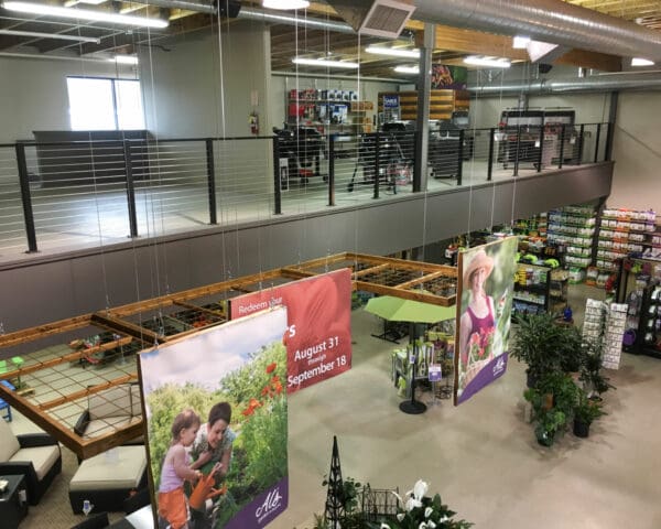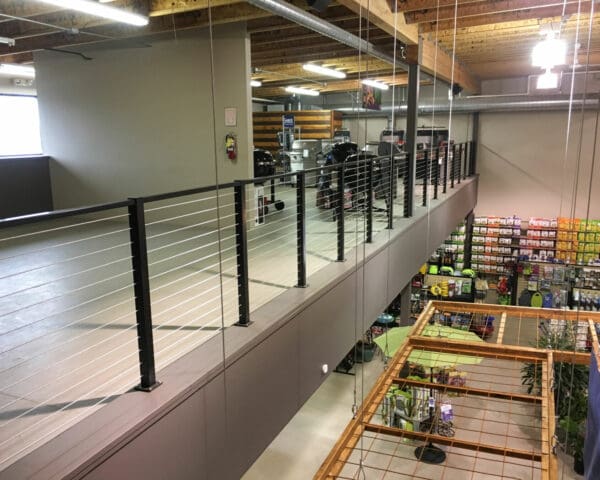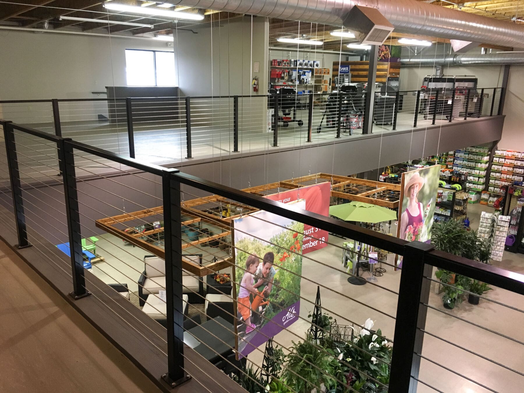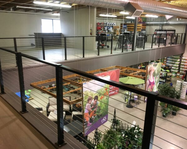 At this yard and garden store in Wilsonville, Oregon, our Black Aluminum system was used. The lines of the cable go well with the industrial aesthetic, while providing safety to guests and employees. The system will last for years with minimal maintenance.