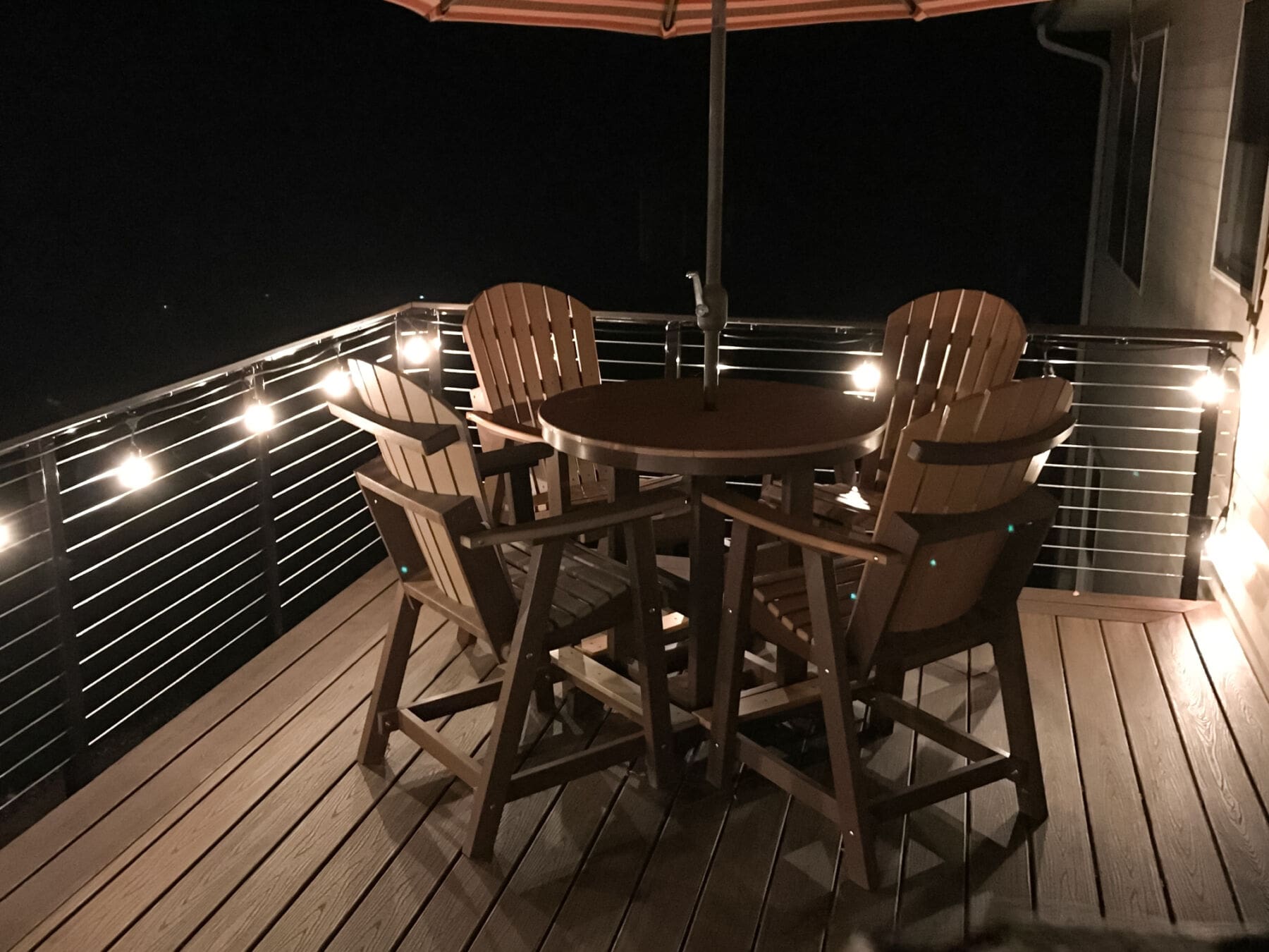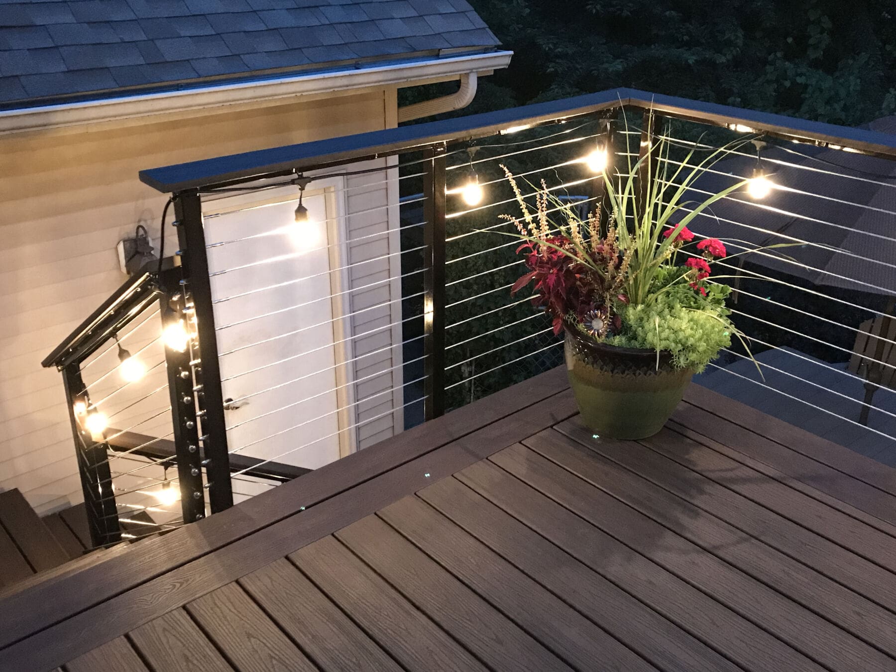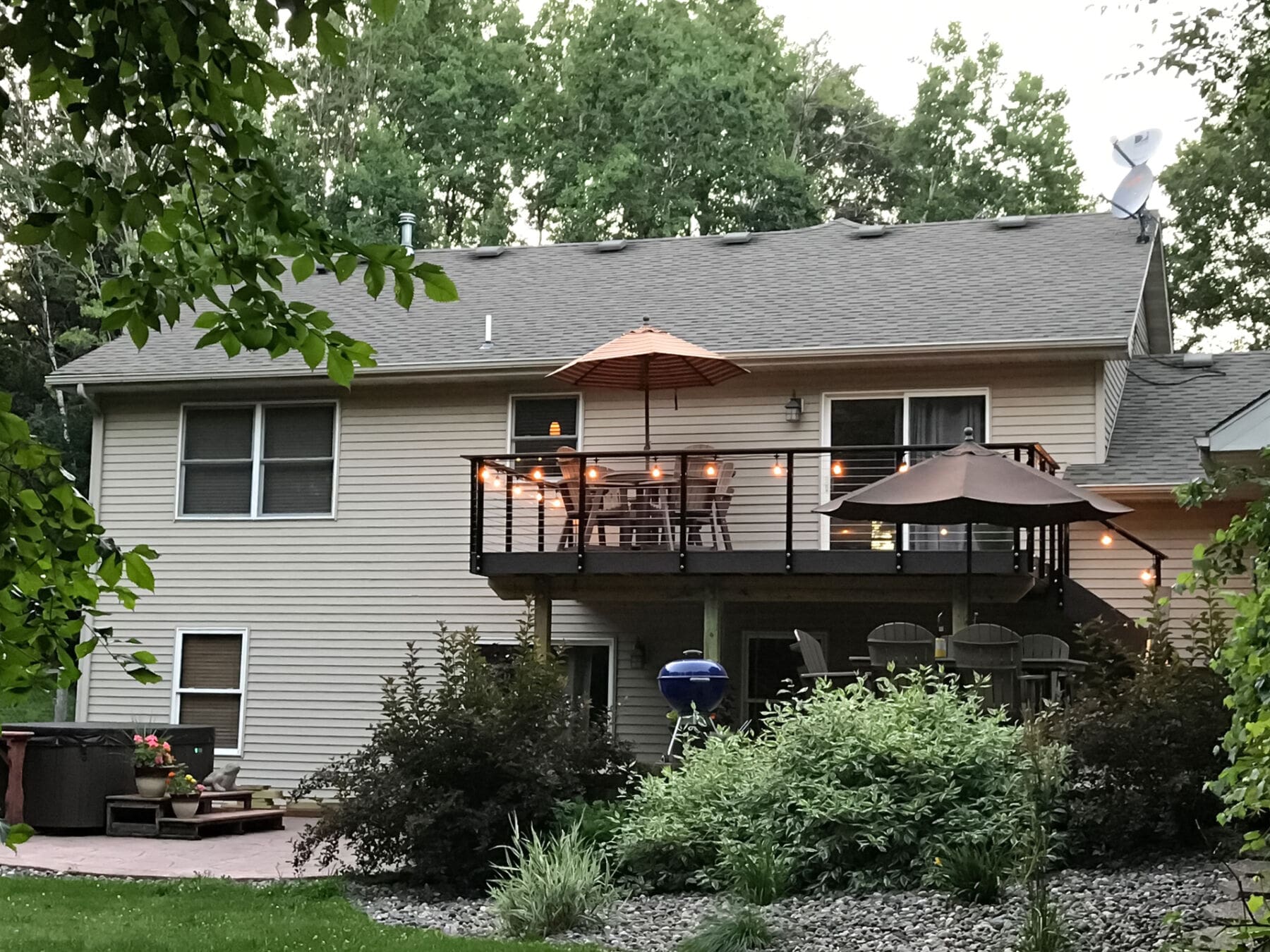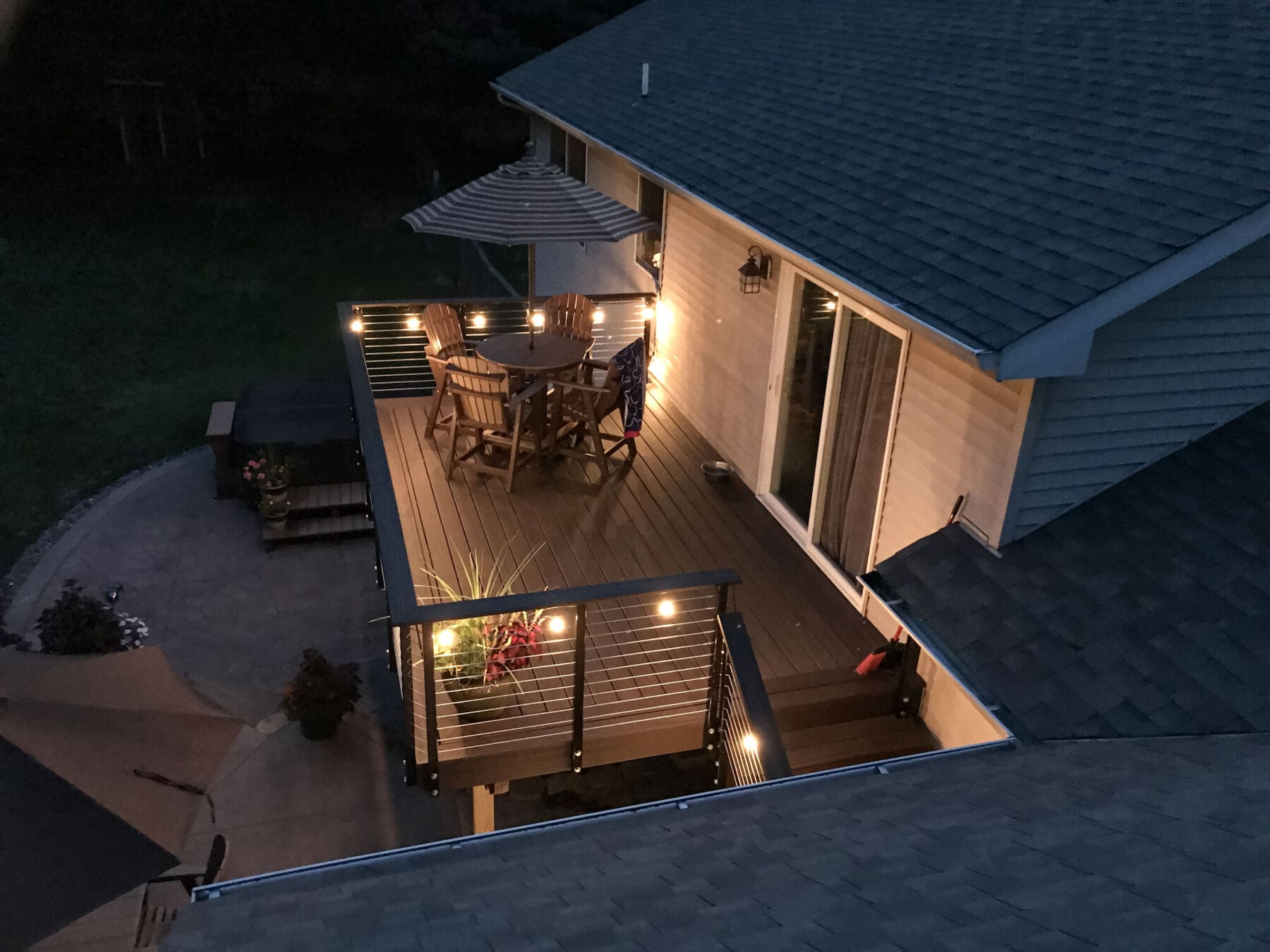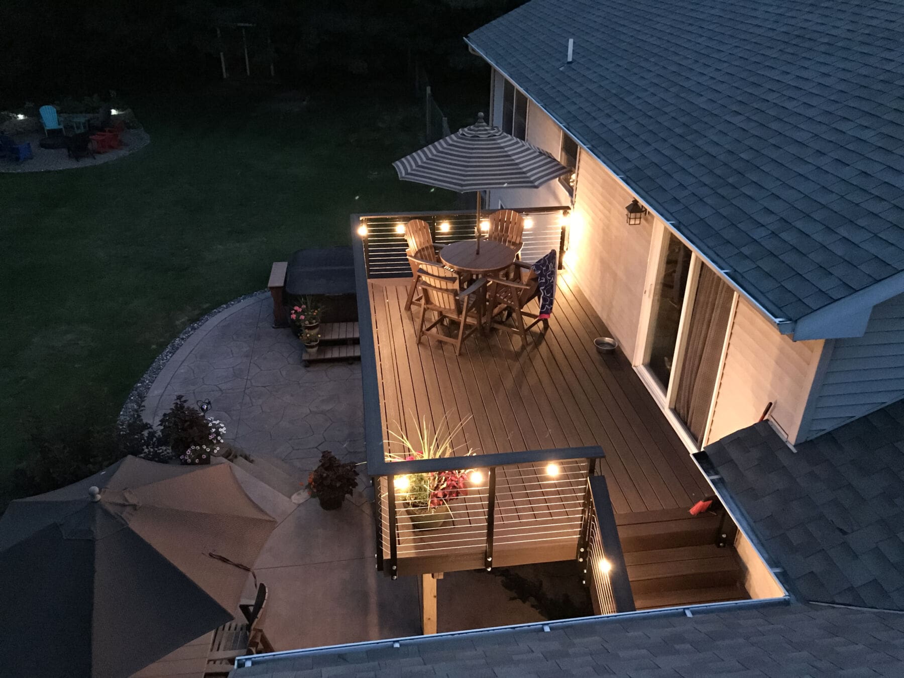 For this upper story deck in Princeton, Minnesota cable railing hardware was used. Cable railing allows the owners to enjoy the view of the yard.