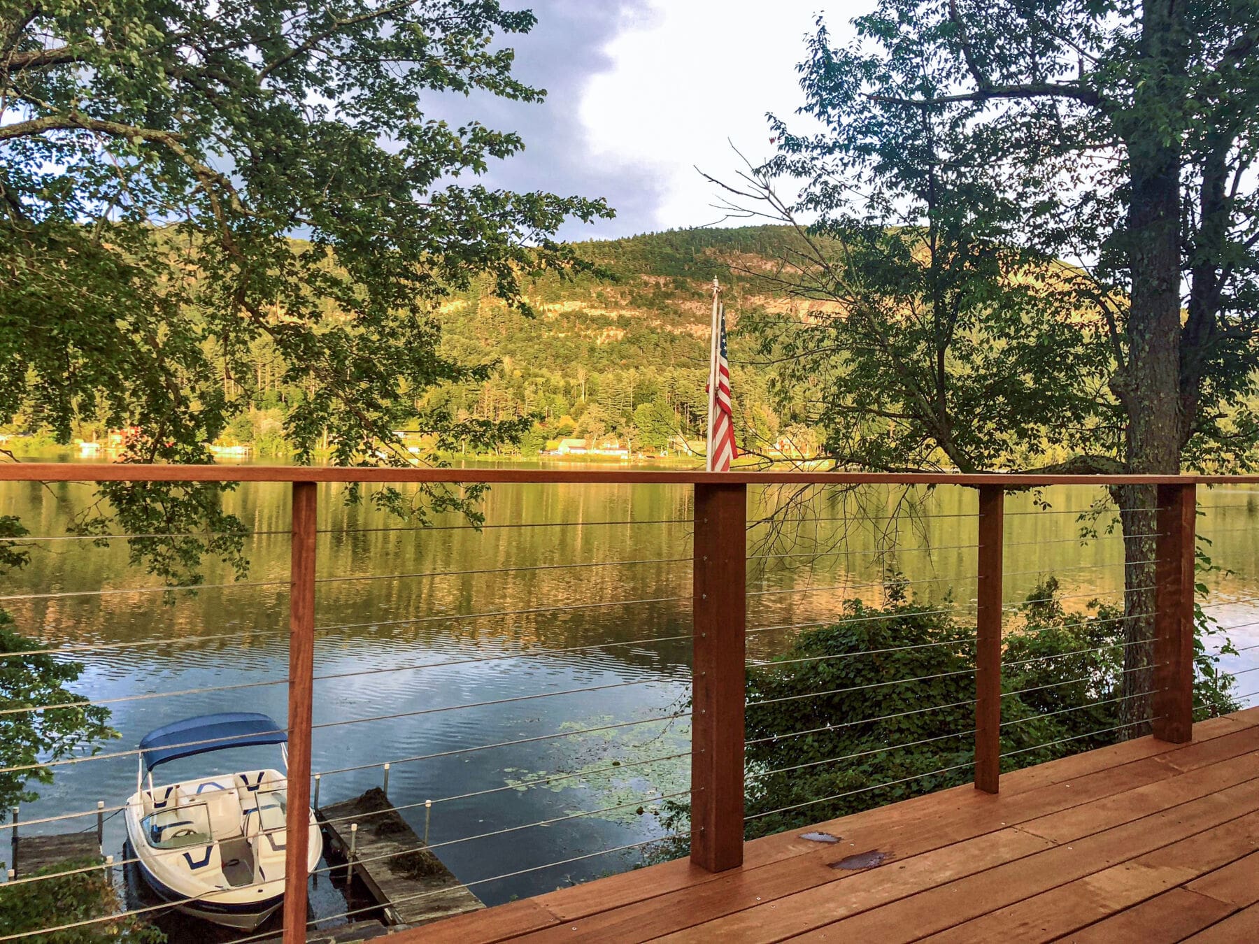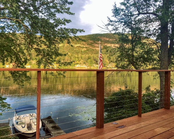 Cable infill keeps the view of this picturesque lake in Wells, VT open and ideal for deck-loungers.