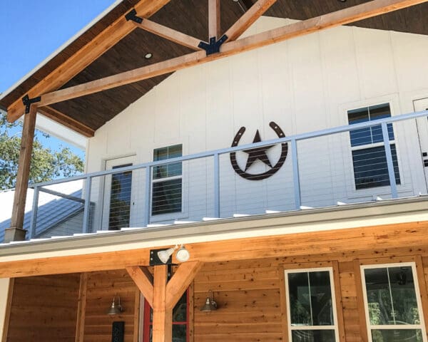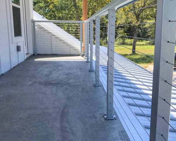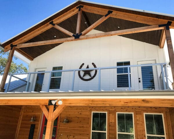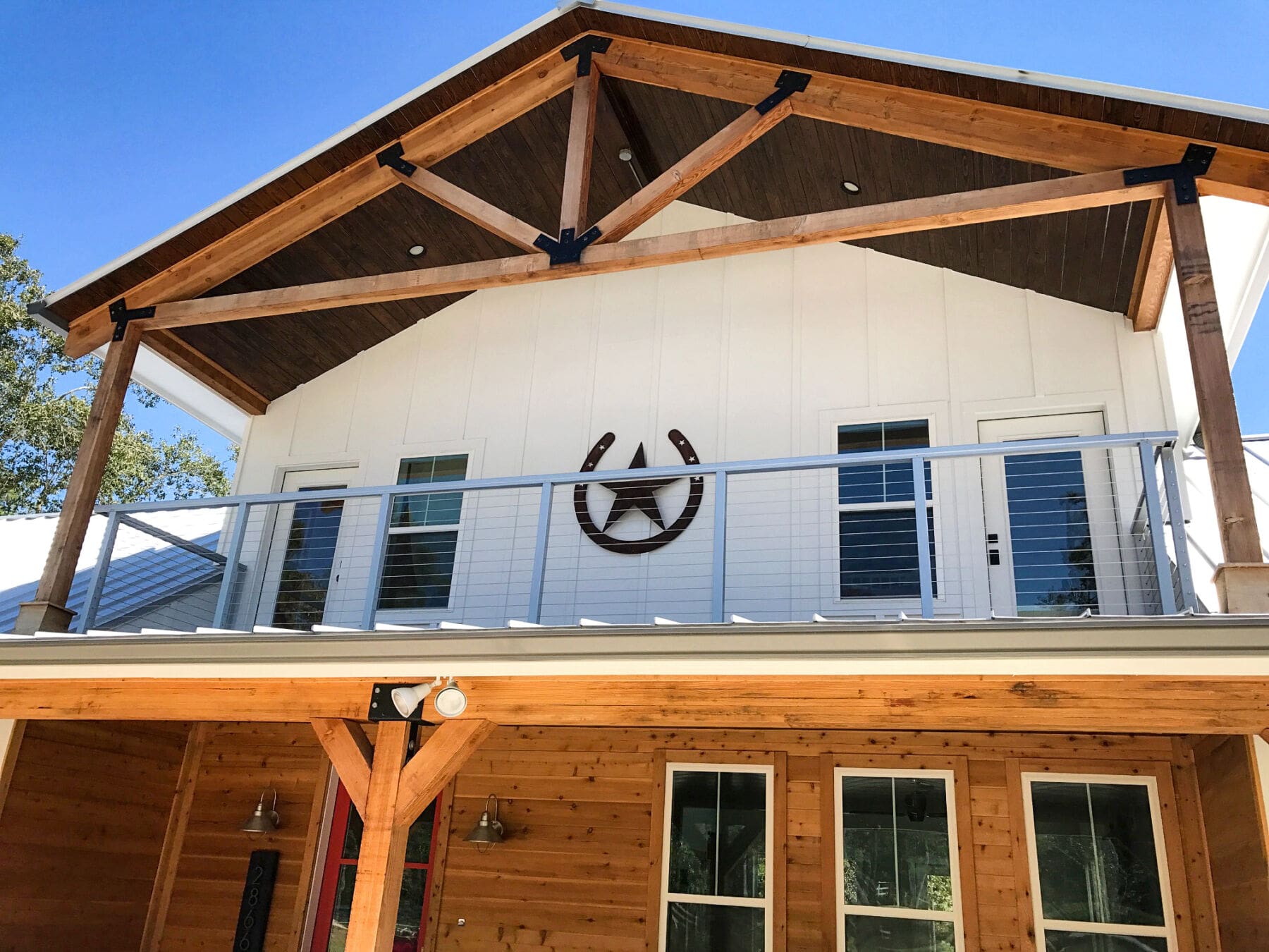 With an interesting farmhouse fusion of rustic and contemporary aesthetics, the cool silver color of our natural aluminum railing fits in perfectly. Our cedar top rail acts as an accent, complimenting the other cedar beams and boards, both inside and out, to tie everything together.