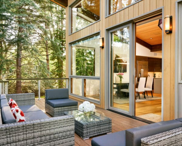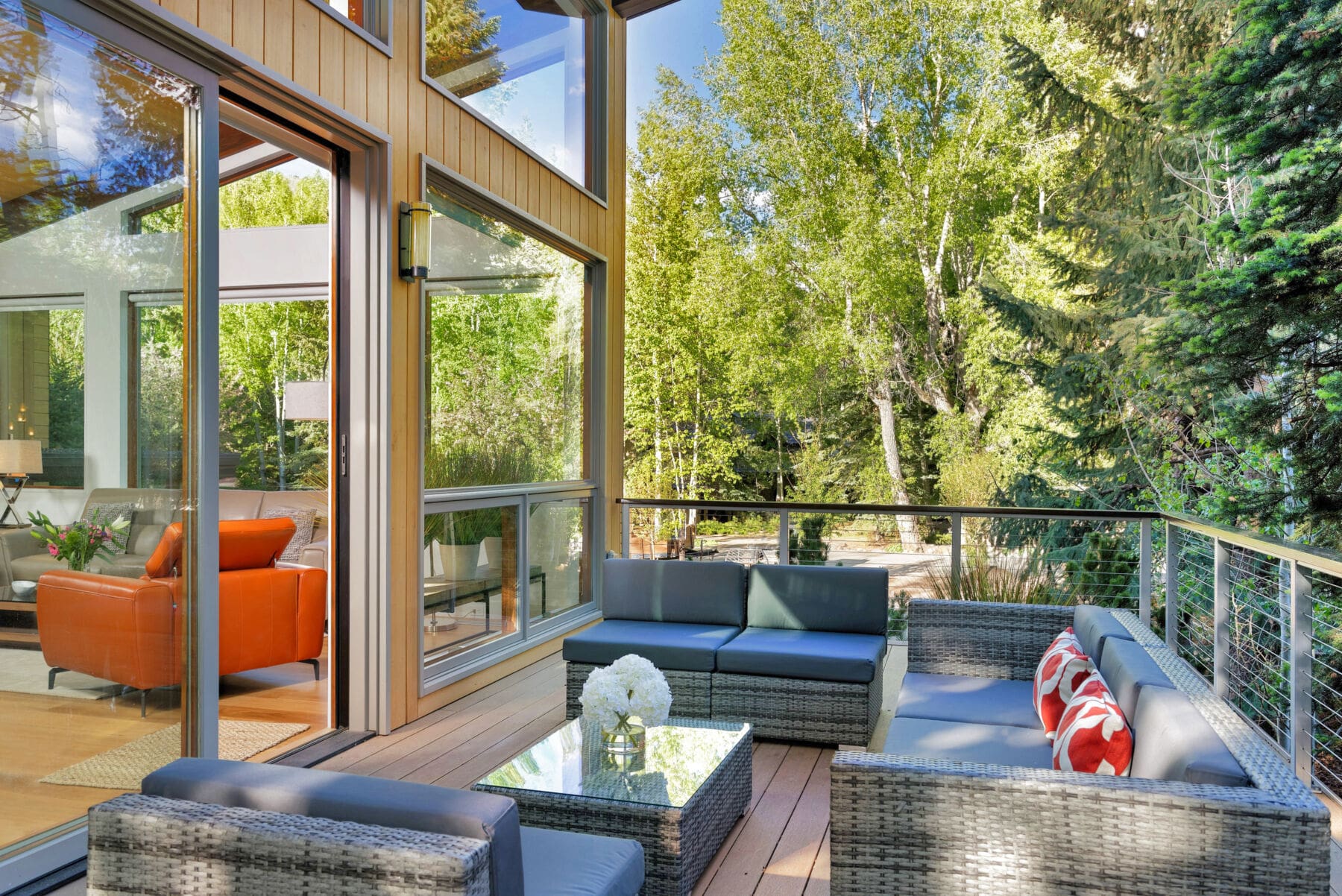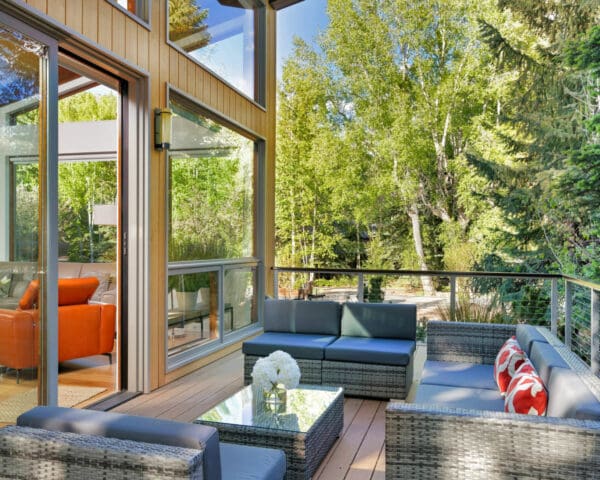 Combining light woods with warm greys, this forest-surrounded house in Aspen, CO offers a contemporary take on rustic living. Our natural aluminum cable railing is the perfect touch to complete this luxurious outdoor area.
