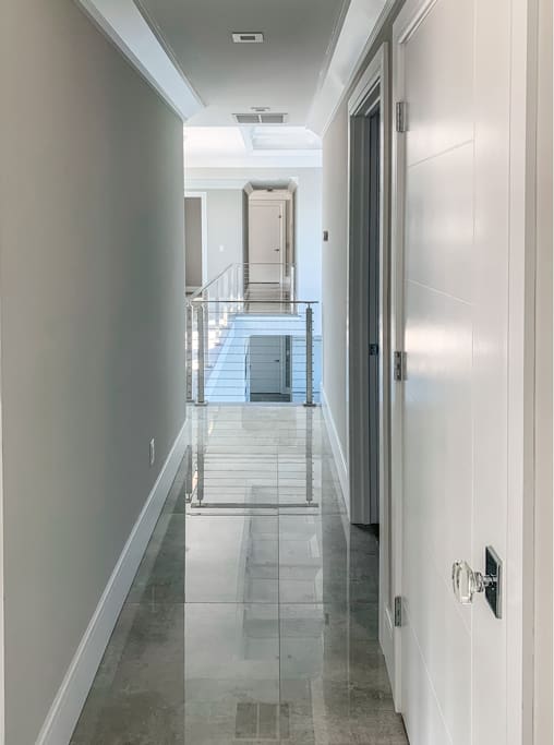- Stainless Flat Top Rail is our thinnest rail option, keeping the view as open as possible. Can also be used for a matching handrail, as seen here.