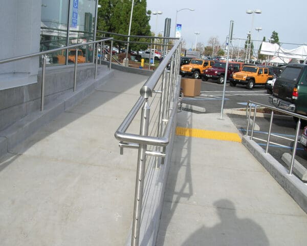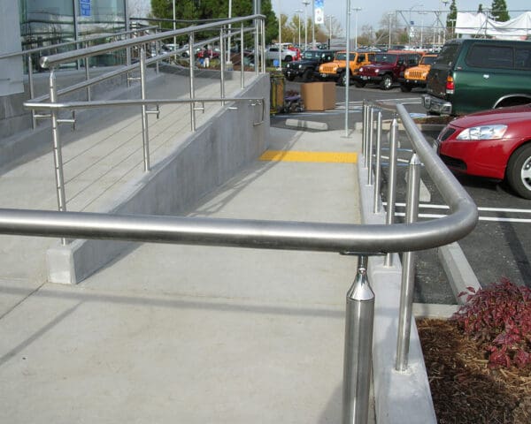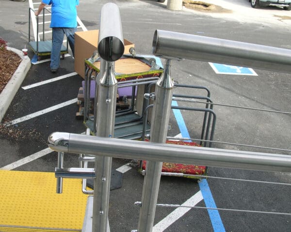 - Stainless Handrail matches the rest of the system and attaches to the posts, running parallel to the top rail, but at a more comfortable height.