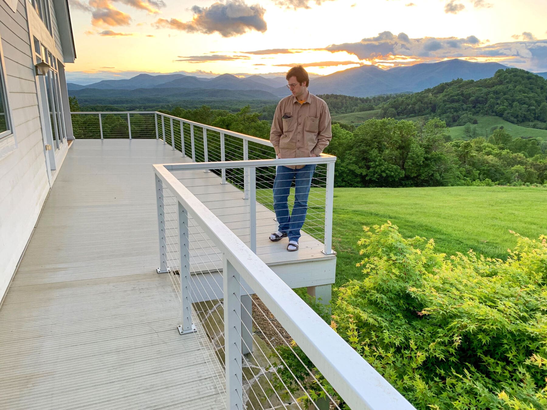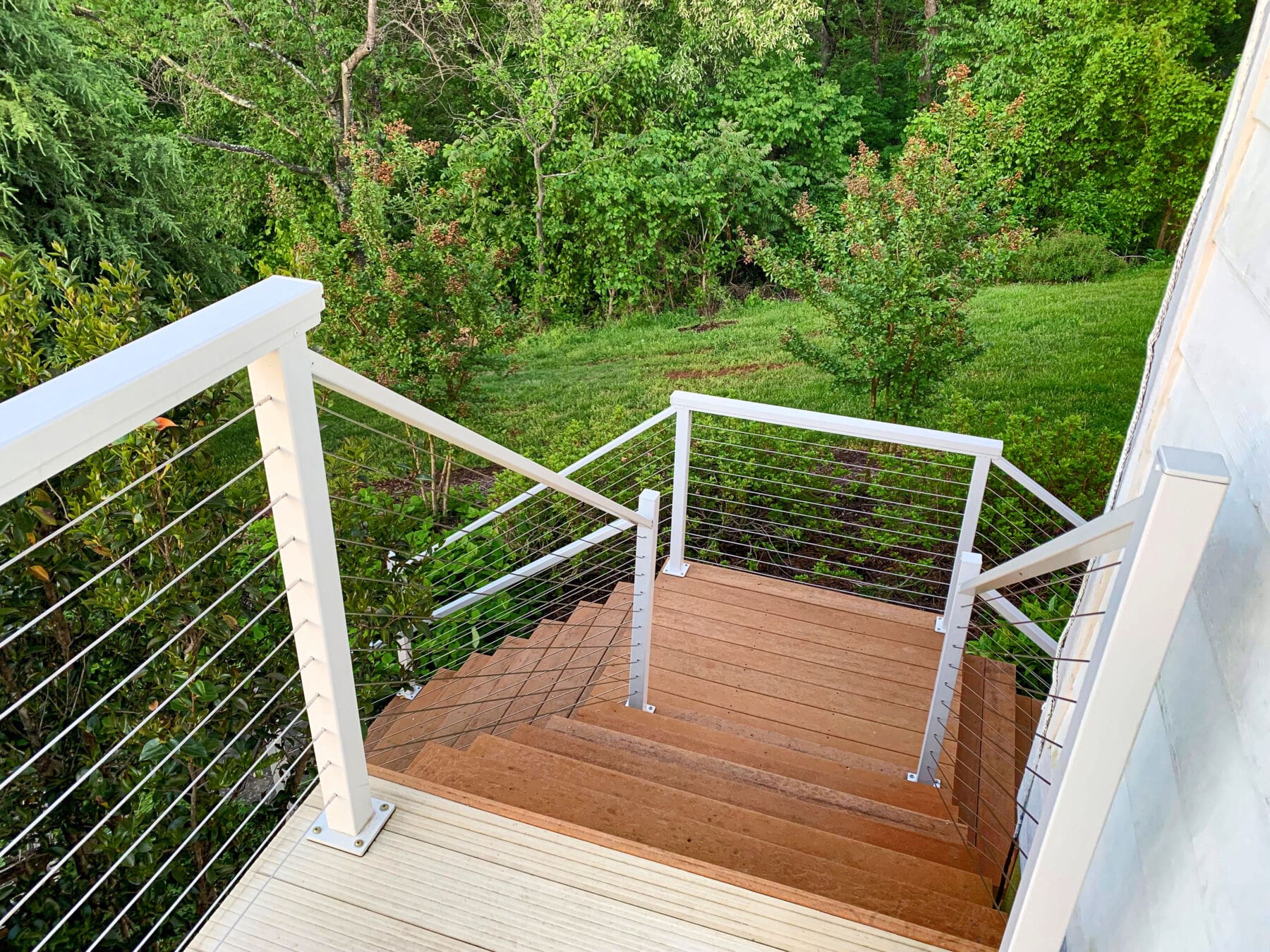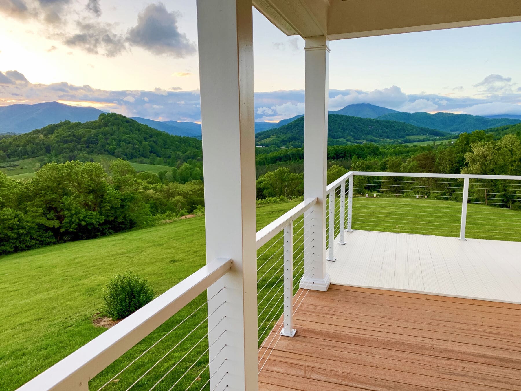 This Virginian home has an extensive porch that wraps around most of the house, with beautiful views of forests and distant hills. Our white cable railing fits perfectly between the white columns, completing this bright, inviting outdoor area.