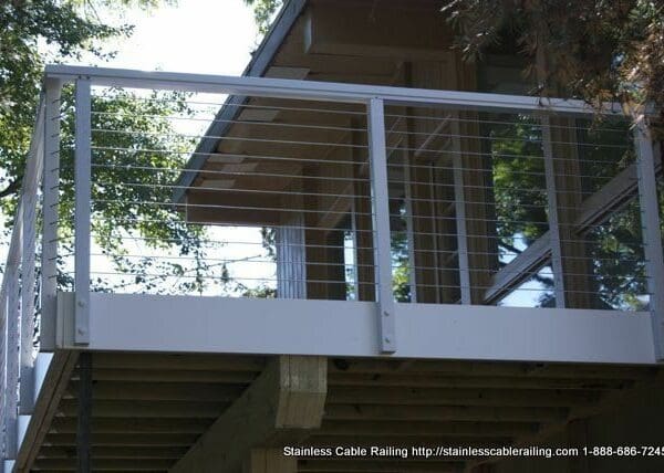 White Aluminum Posts, Aluminum handrail and Stainless Steel Cable Railing -D Patton Washington DC