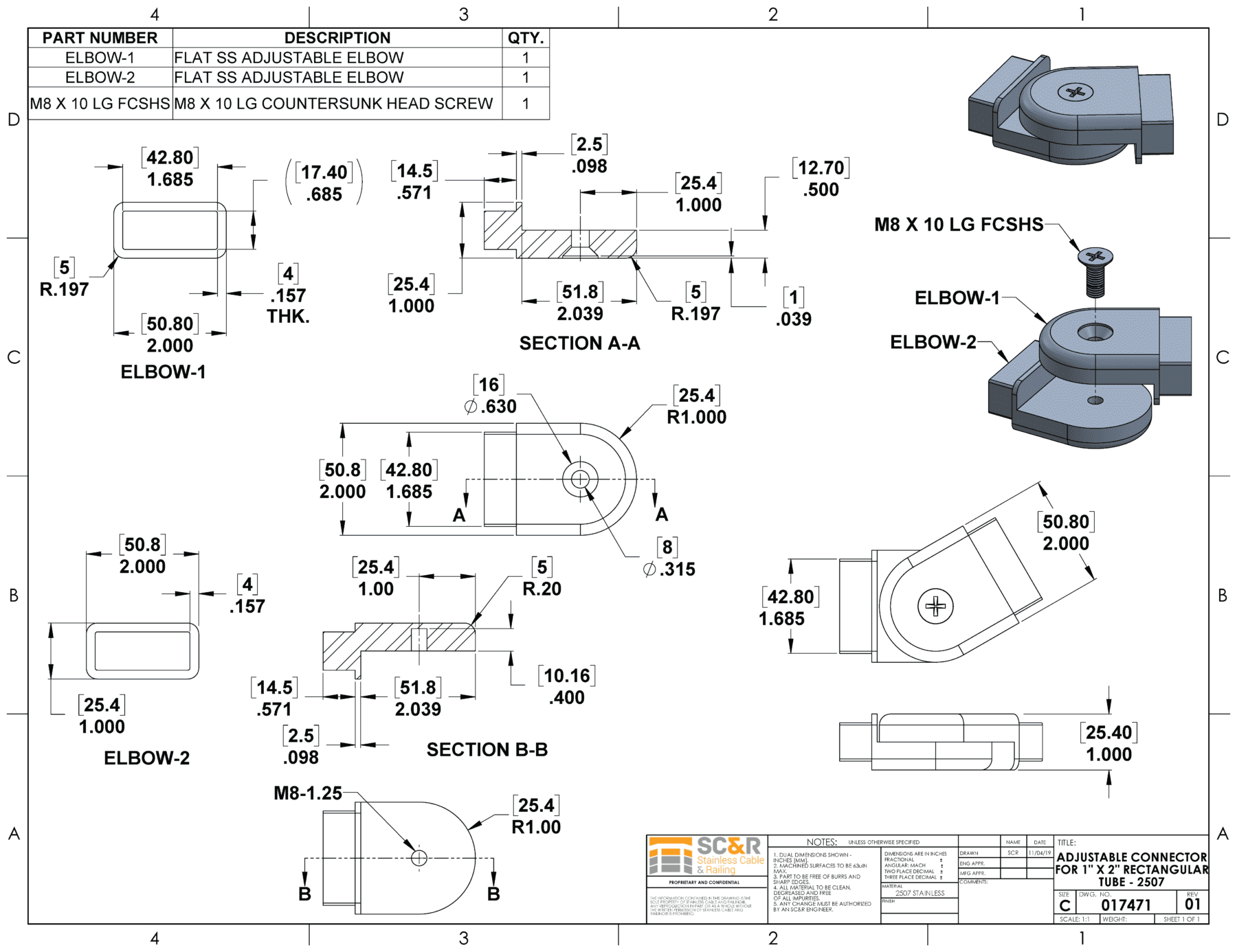 2507 Stainless Steel Adjustable Elbow for Flat Top Rail