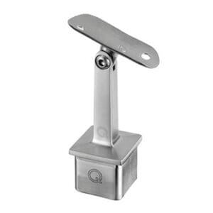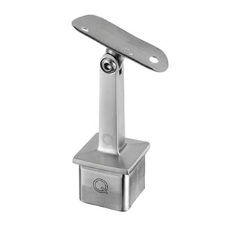 Use this saddle bracket on a square 40×40 post to hold a round handrail. This saddle bracket is angle adjustable. Easily installs into the top of a post with Q-glue. Avoids having to have holes drilled into the glass panel in order to attach a handrail. Call or email for ordering assistance.