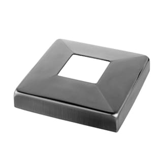 Use this square stainless steel baluster post base cover to hide the exposed hardware on the post base for safety and aesthetics. Square center reception designed to fit square 40×40 posts. Call or email for ordering assistance.