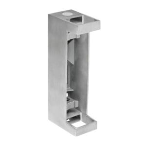 Use this stainless steel post tube bracket as the foundation of a 40×40 fascia mount railing system. This bracket provides a thin, streamlined look, that safely holds the baluster posts against the fascia. Call or email for ordering assistance.