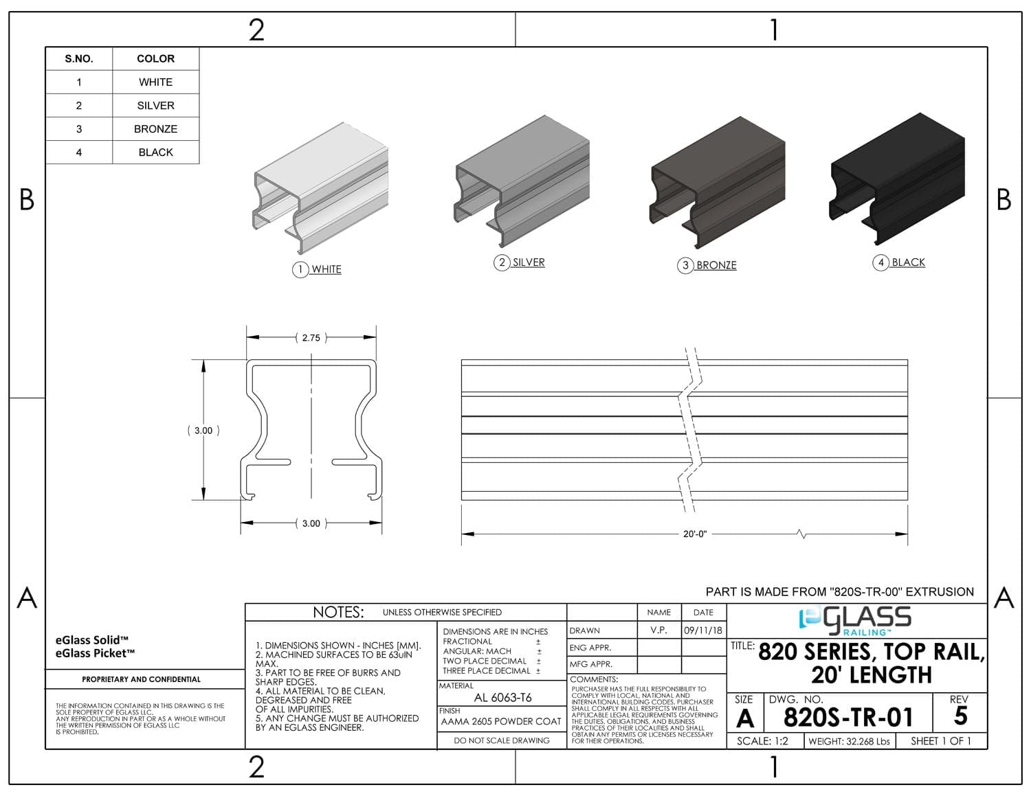 - 1ea 820 SERIES TOP RAIL per ordered variation