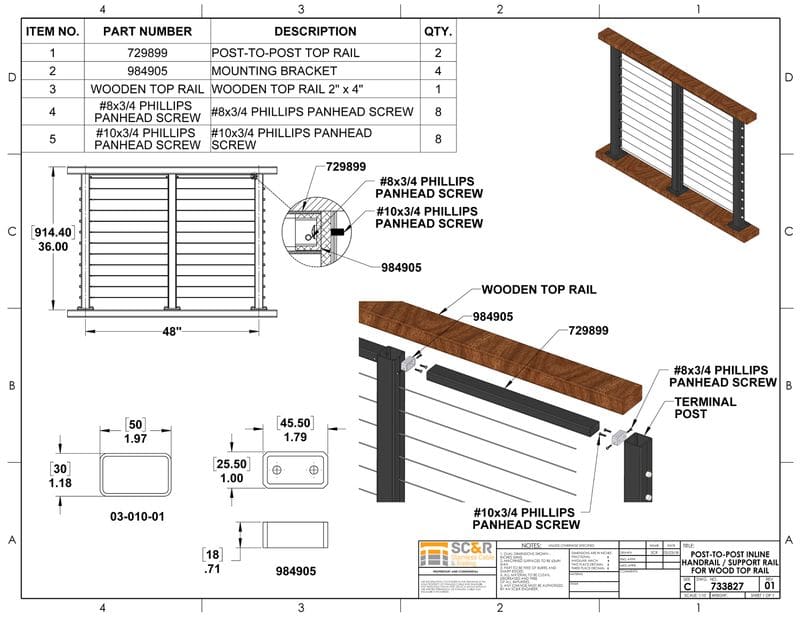 ORDER WOOD TOP RAIL, SCREWS/WASHER, POSTS, CABLES, & FITTINGS SEPARATELY.