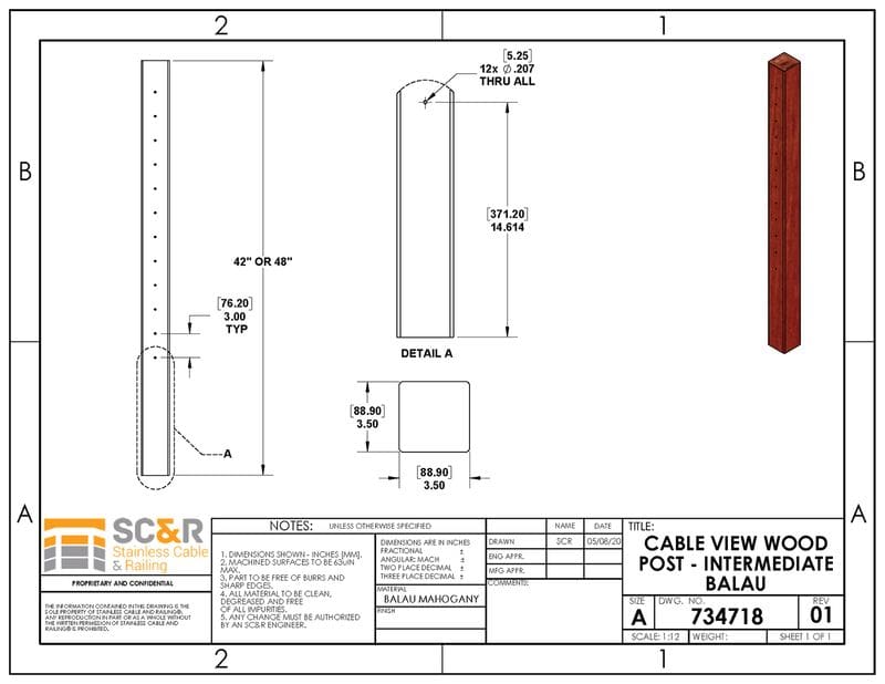 These pre-drilled Balau Mahogany posts are drilled with holes only large enough for our thin cable infill to pass through for a clean, snug fit. Use as Intermediate Posts in your run, and space them no more than 4′ apart.
