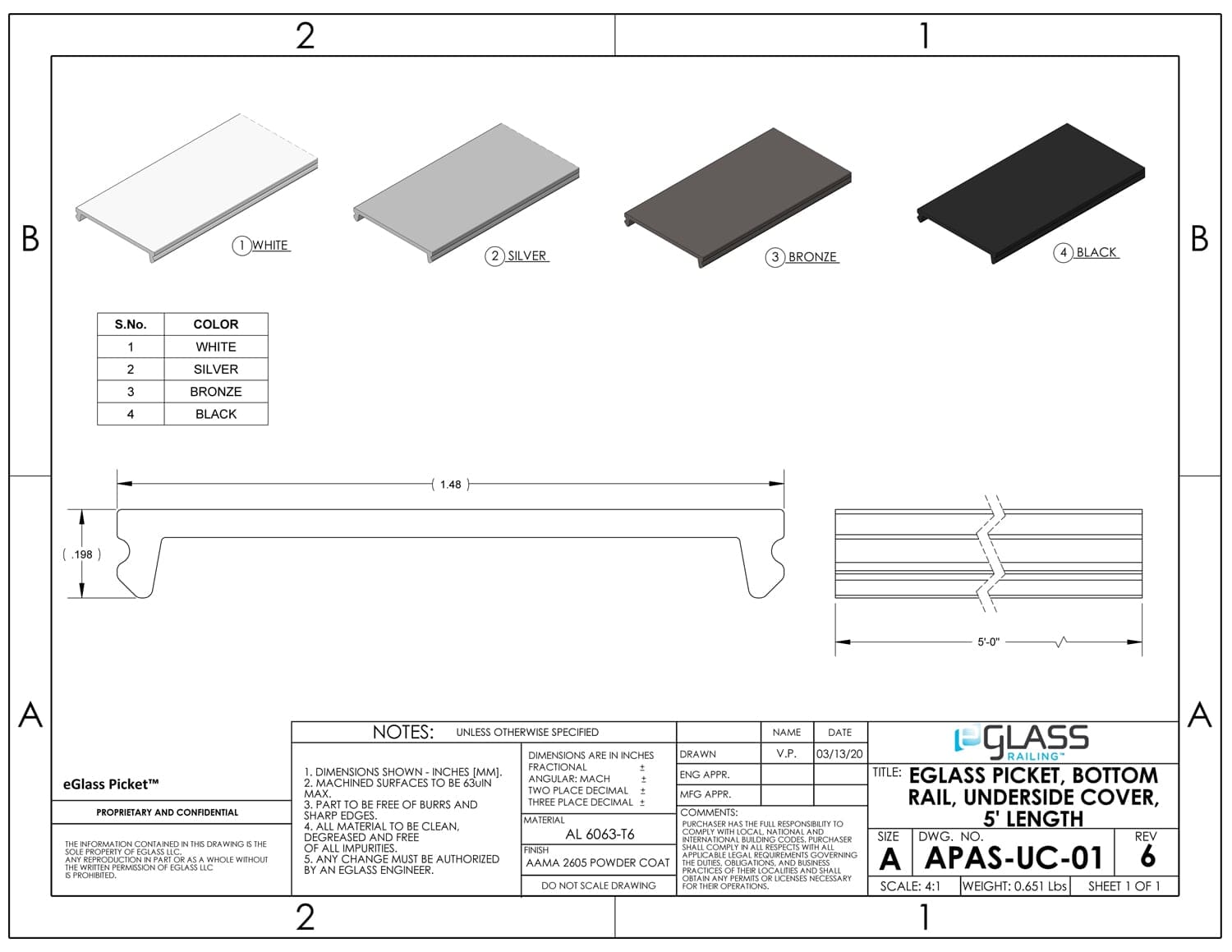 | AL 6061-T6 Alloy | AAMA 2605 Powder Coat | Black, Bronze, Silver, White | 2″ x 1.5″ x 5′ | 10-year (5-year Florida) |