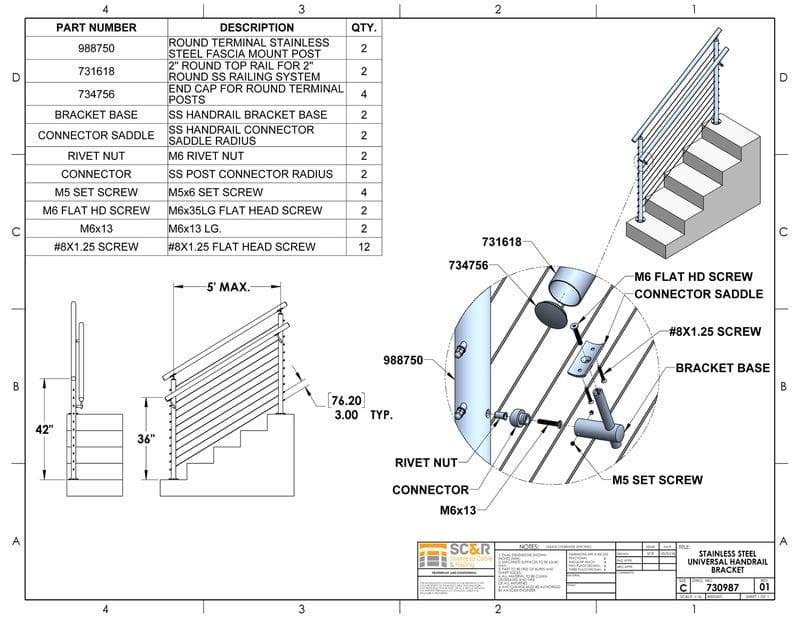 | Handrail Connector | 2in Round Handrail, 2in Round Handrail – 90Deg Corner, Flat Handrail, Flat Handrail – 90Deg Corner |