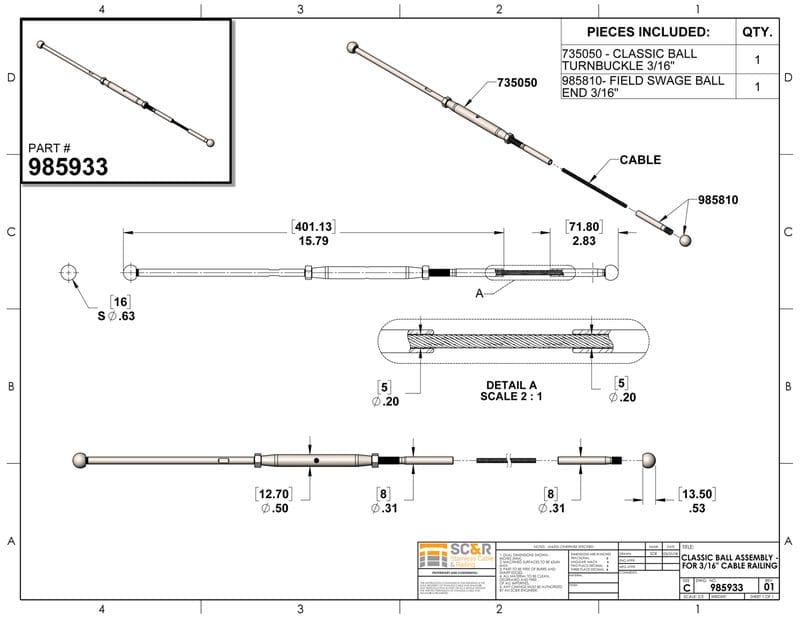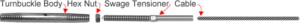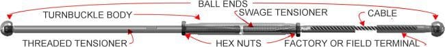 - Note: For all Assembly lengths >50′ (70′ max) and/or runs from 0-70′ with more than 1 90 degree corner, it is recommended to omit the SWAGE BALL END and use 2 CLASSIC BALL TURNBUCKLES instead to allow cable tightening at both ends of your run.