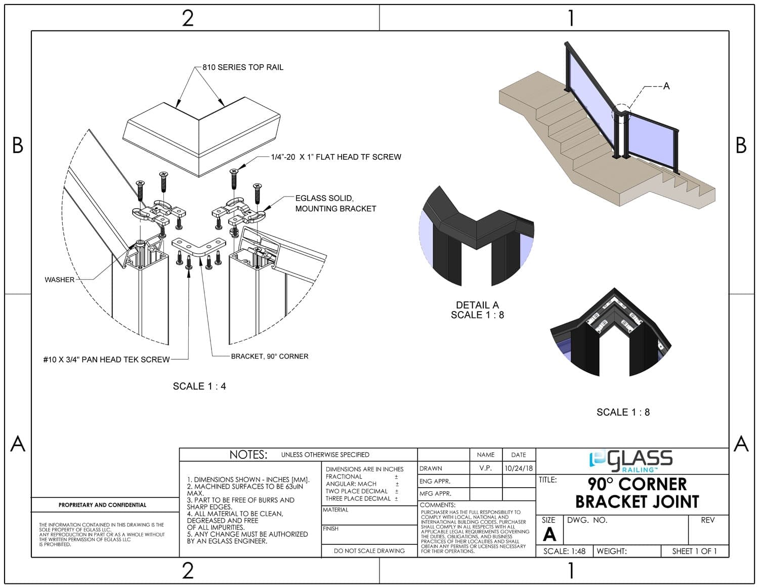 Use this bracket to fuse any mitered continuous eGlass Element™, eGlass Solid™ or eGlass Picket™ top rail corners that are not directly supported by a post. Designed for corner arrangements, these brackets allow changes in direction both vertically and horizontally.