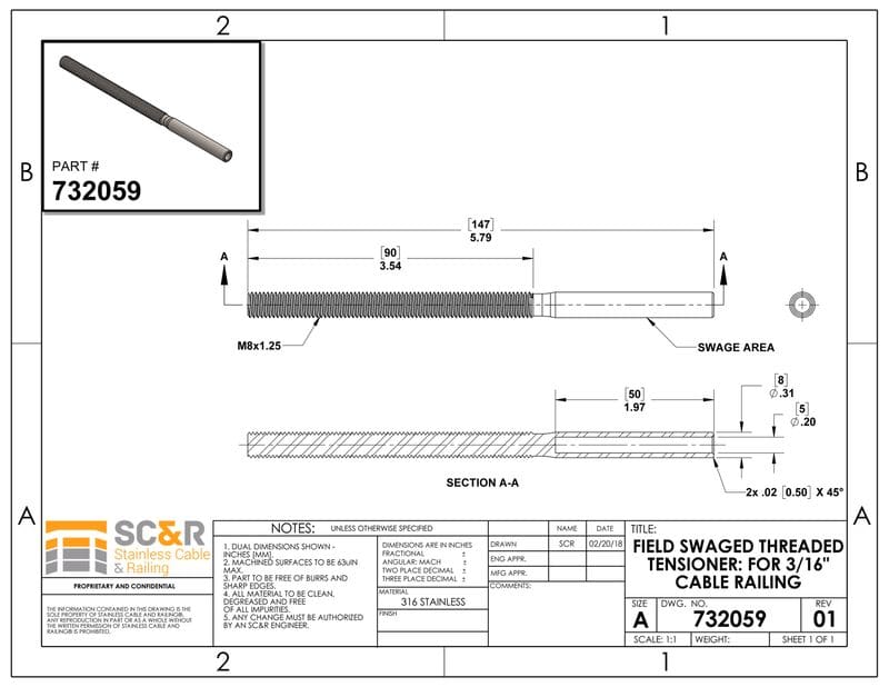 Field Swaged Threaded Tensioner : Cable Railing Systems