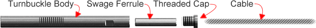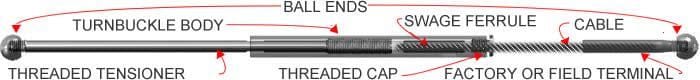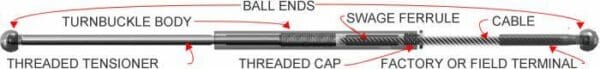 - Note: For all Assembly lengths >50′ (70′ max) and/or runs from 0-70′ with more than 1 90 degree corner, it is recommended to omit the SWAGE BALL END and use 2 FineLine™ BALL TURNBUCKLES instead to allow cable tightening at both ends of your run.
