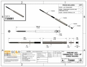 See number “1” in the above drawing to see how the FineLine™ LAG TURNBUCKLE is used in the wire rope cable assembly.