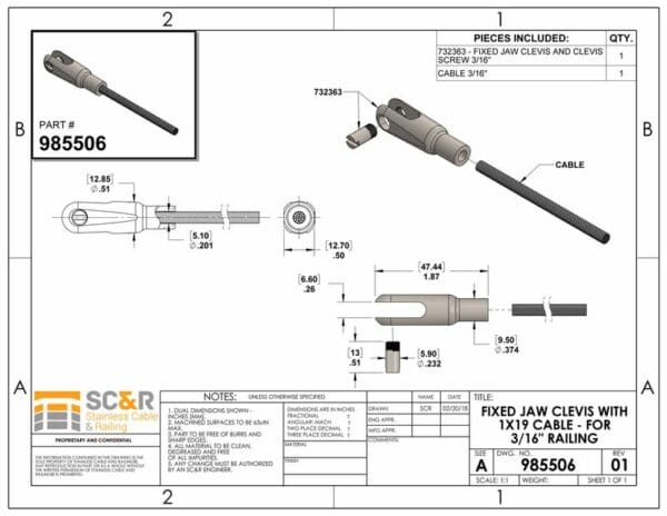CABLE RAILING SYSTEMS : FIXED JAW CLEVIS WITH 7X7 CABLE