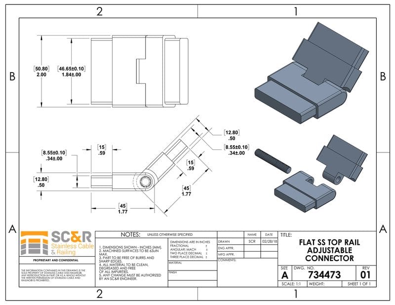 Flat Stainless Steel Adjustable Connector for Top Rail