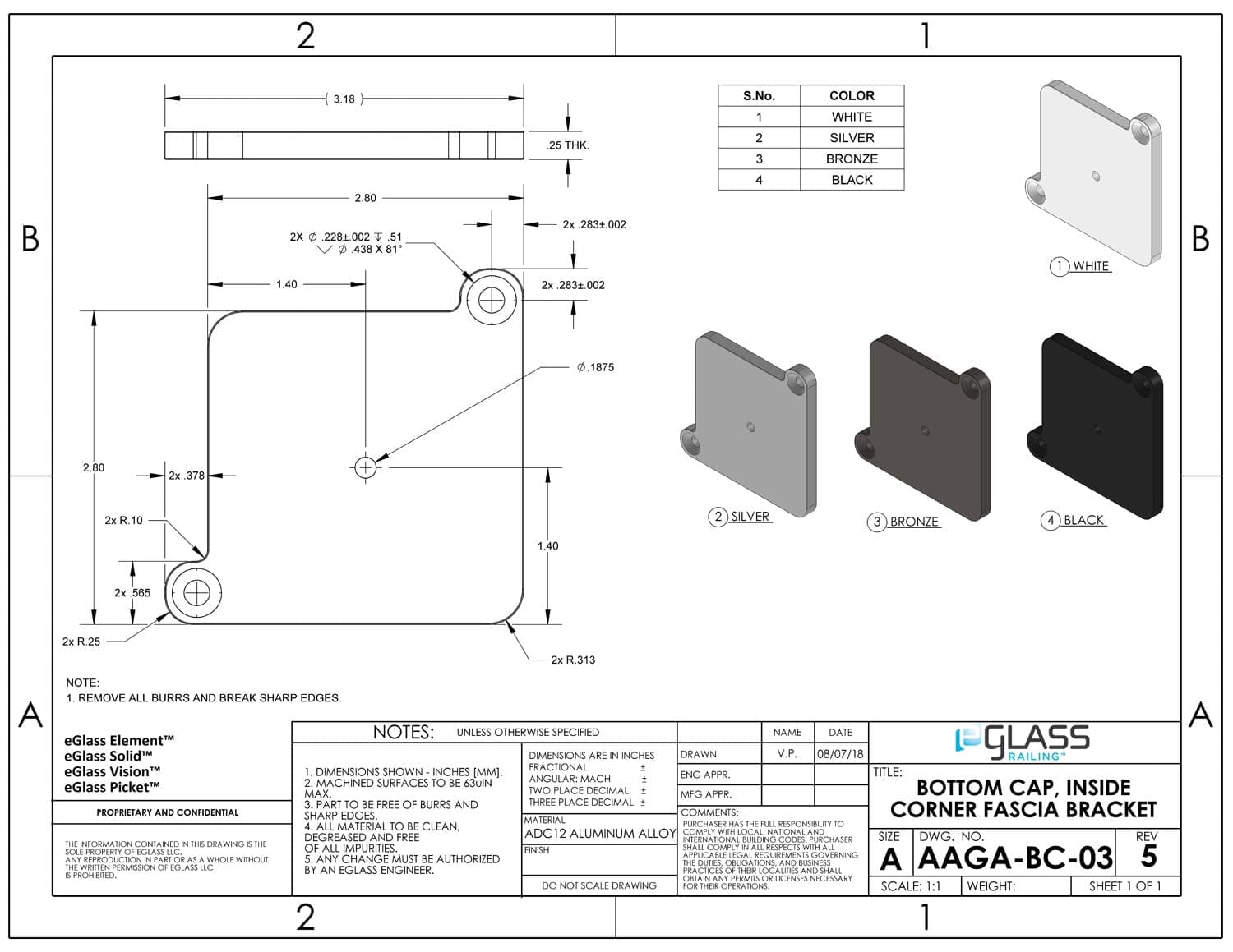 | ADC12 Aluminum Alloy | AAMA 2605 Powder Coat | Black, Bronze, Silver, White | 4.5″ x 4.5″ x 6″ | 10-year (5-year Florida) |