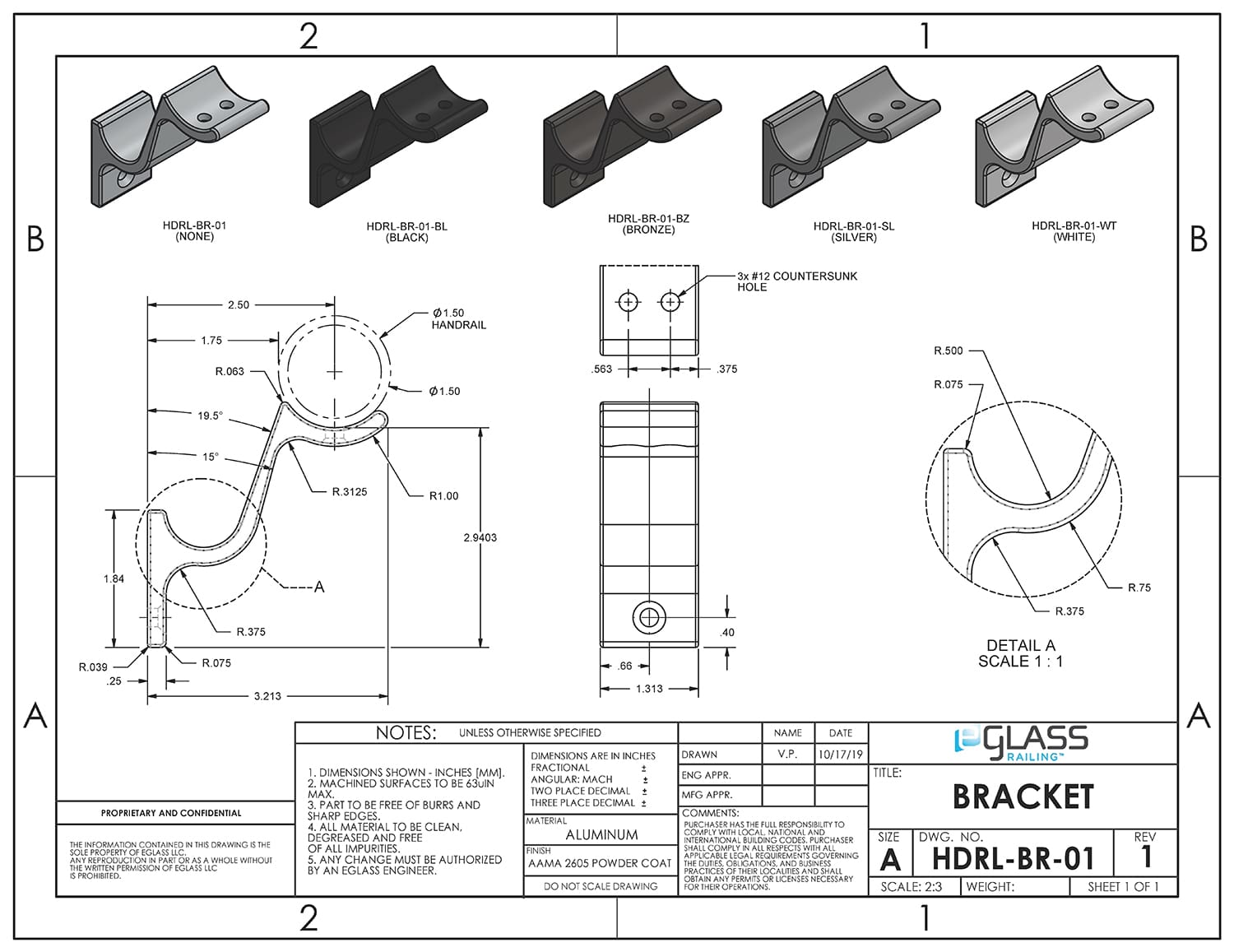 Attach your Link Handrail™ to a wall or square posts using these saddle brackets. Handrail brackets should be spaced no more than 4ft apart.