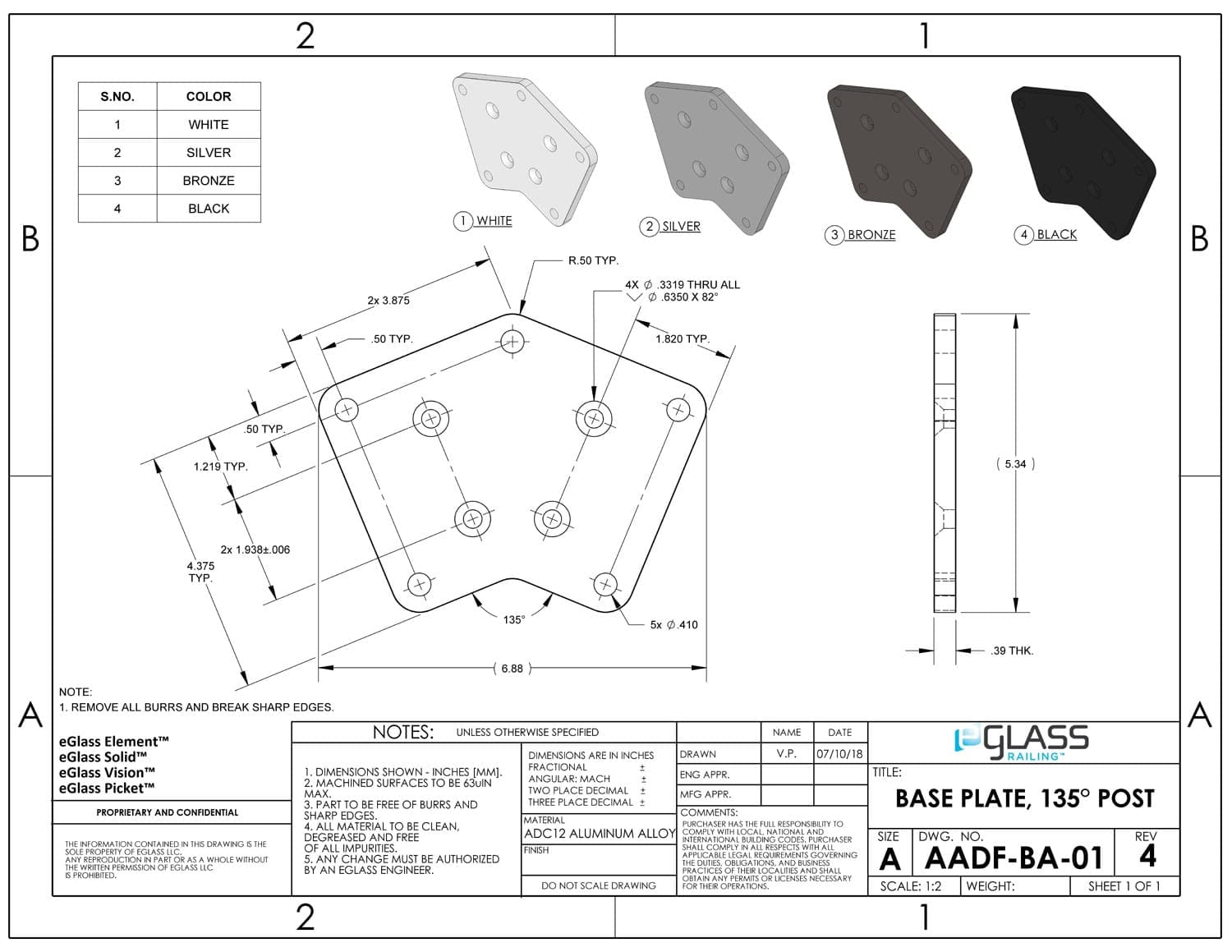 All eGlass Railing™ 135 degree posts come with base plates and screws. Spare base plates and screws may be ordered here, if necessary.