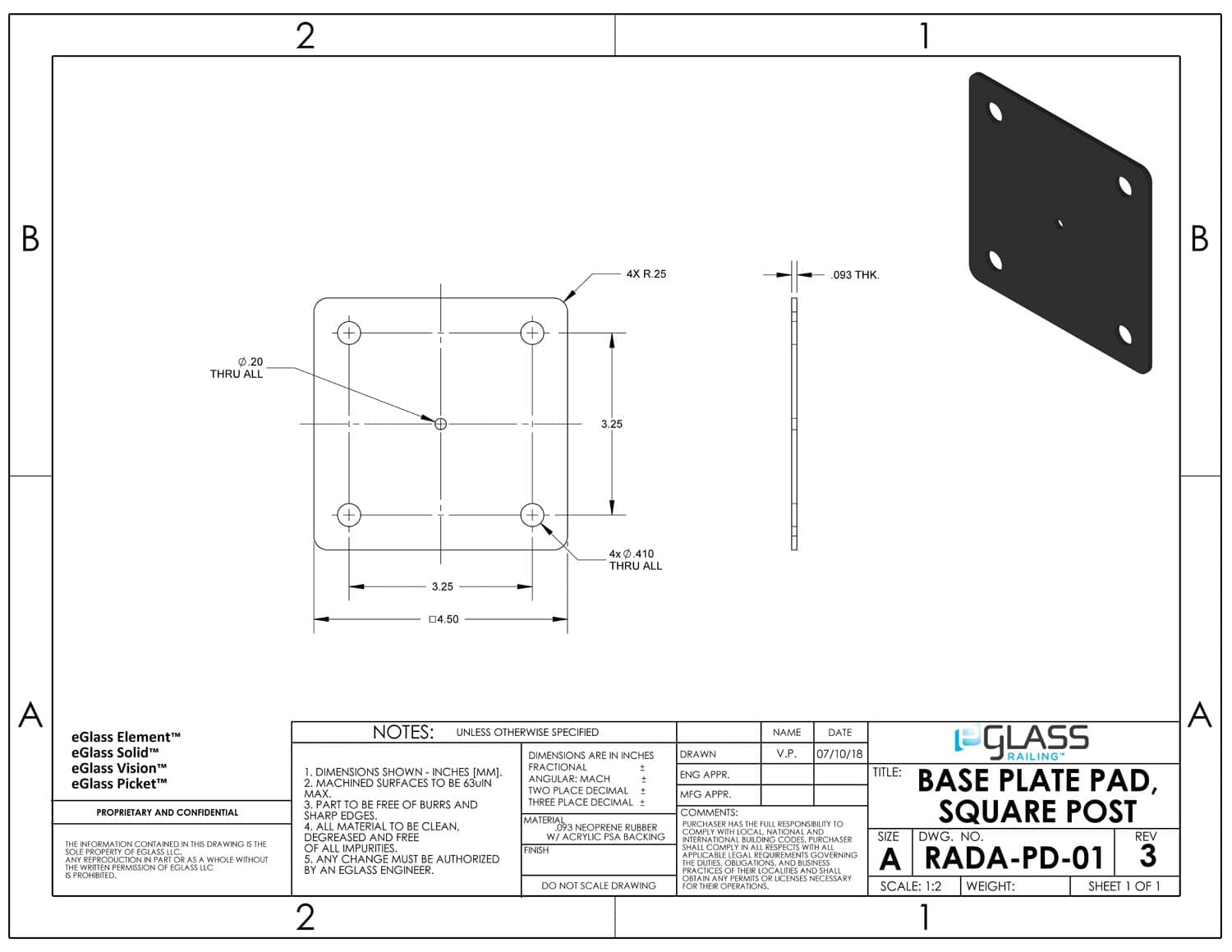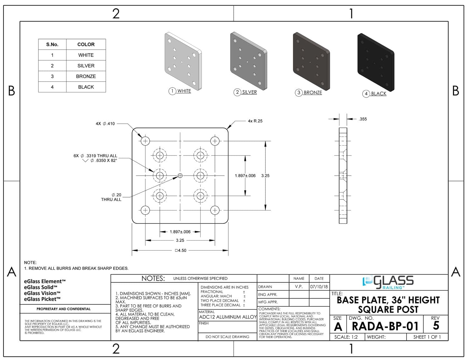 All eGlass Railing™ deck mount posts come with base plates and screws. Spare base plates and screws may be ordered here, if necessary.
