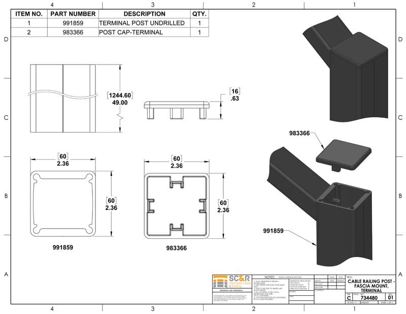 - FASCIA MOUNT POSTS Attaches to the bottom of each fascia mounted aluminum post. Note: When ordering fascia mount posts, the POST CAP is included.