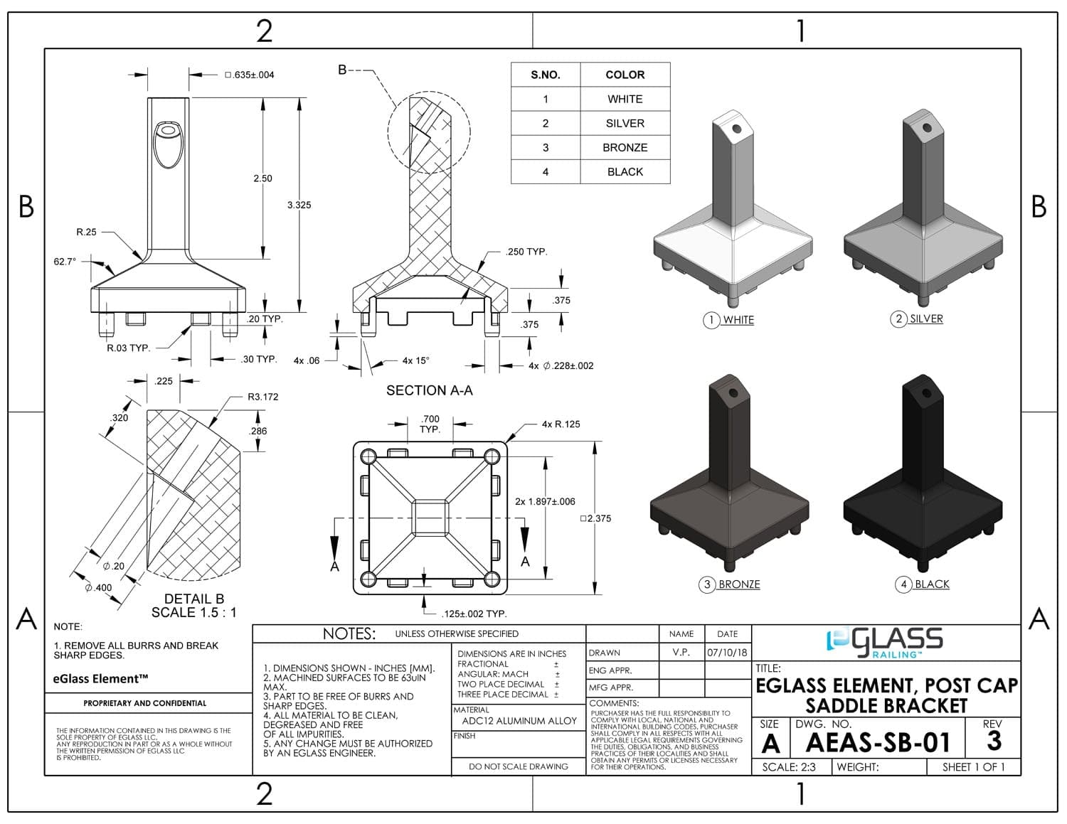 | ADC12 Aluminum Alloy | AAMA 2605 Powder Coat | Black, Bronze, Silver, White | 2″ x 2″ x 3″ | 10-year (5-year Florida) |