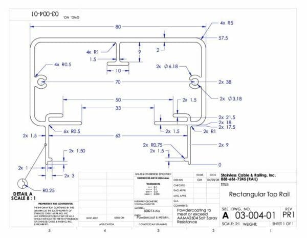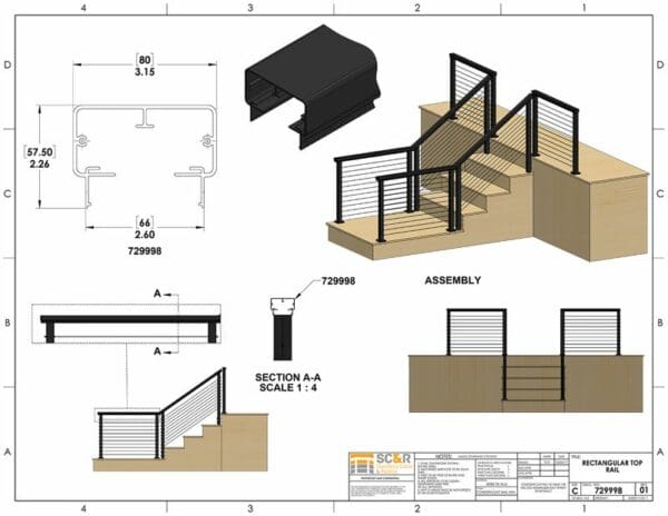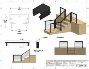 Top Rail for Cable Railing – Aluminum Rectangular