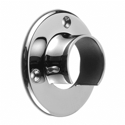 This round cap rail wall flange connects round cap rail to a wall or flat surface instead of a post. 316 stainless; joins with Q-glue.