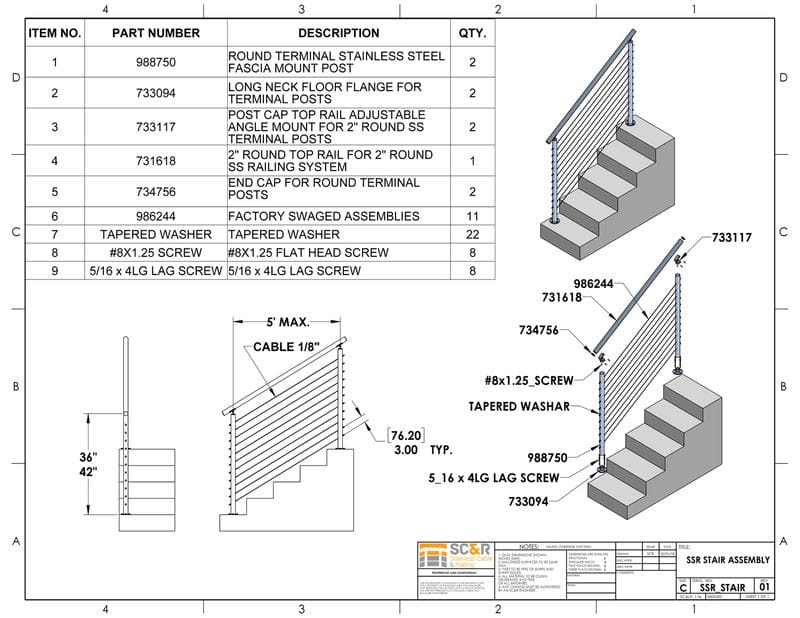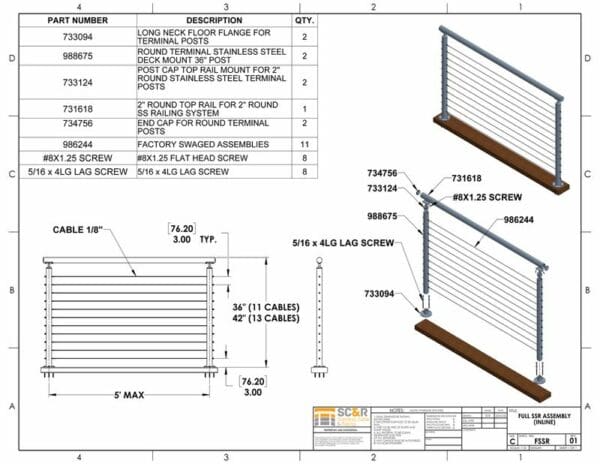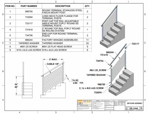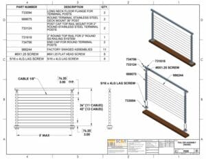 For design assistance, call us any time at 1-888-686-7245 (RAIL) or email [email protected]. Fax us a sketch or fill out the ESTIMATE REQUEST FORM for a free estimate. You might also want to check out our cable railing videos and WORKSHEETS.