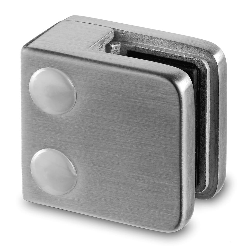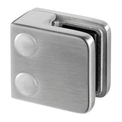Use these square stainless steel glass clamps to attach glass panels securely to flat rectangular posts. Installation is made easy by simply tightening the screws on the glass clamps. Glass clamps are lined with rubber pads to grip the glass securely. For Deck Mount installations only. For Fascia Mount use Part # 14.4210.000.12. Call or email for ordering assistance.