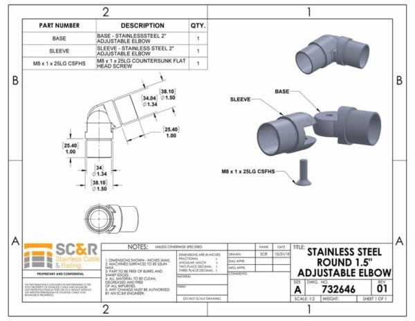 Stainless Steel Round 1.5″ Adjustable Elbow