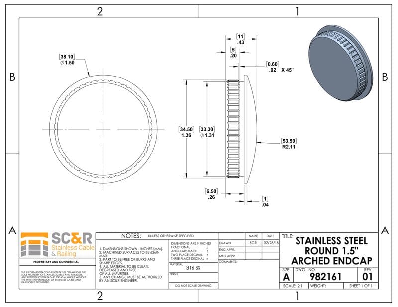 Stainless Steel Round 1.5″ Arched Endcap