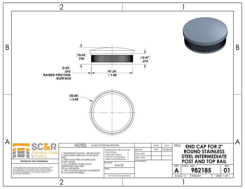 END CAP FOR 2″ ROUND STAINLESS STEEL INTERMEDIATE POST AND TOP RAIL