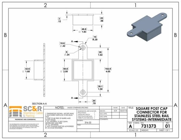 NOTE: Cap goes inside post (Terminal or Intermediate) with epoxy and Top Rail attaches with screws (not provided) to it.