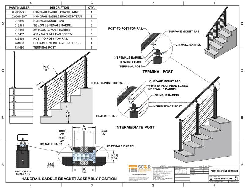 ORDER WOOD TOP RAIL, SCREWS/WASHER, POSTS, CABLES, & FITTINGS SEPARATELY.