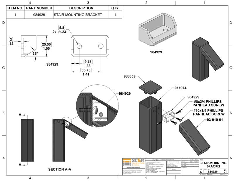 EACH STAIR RAIL ASSEMBLY INCLUDES:
