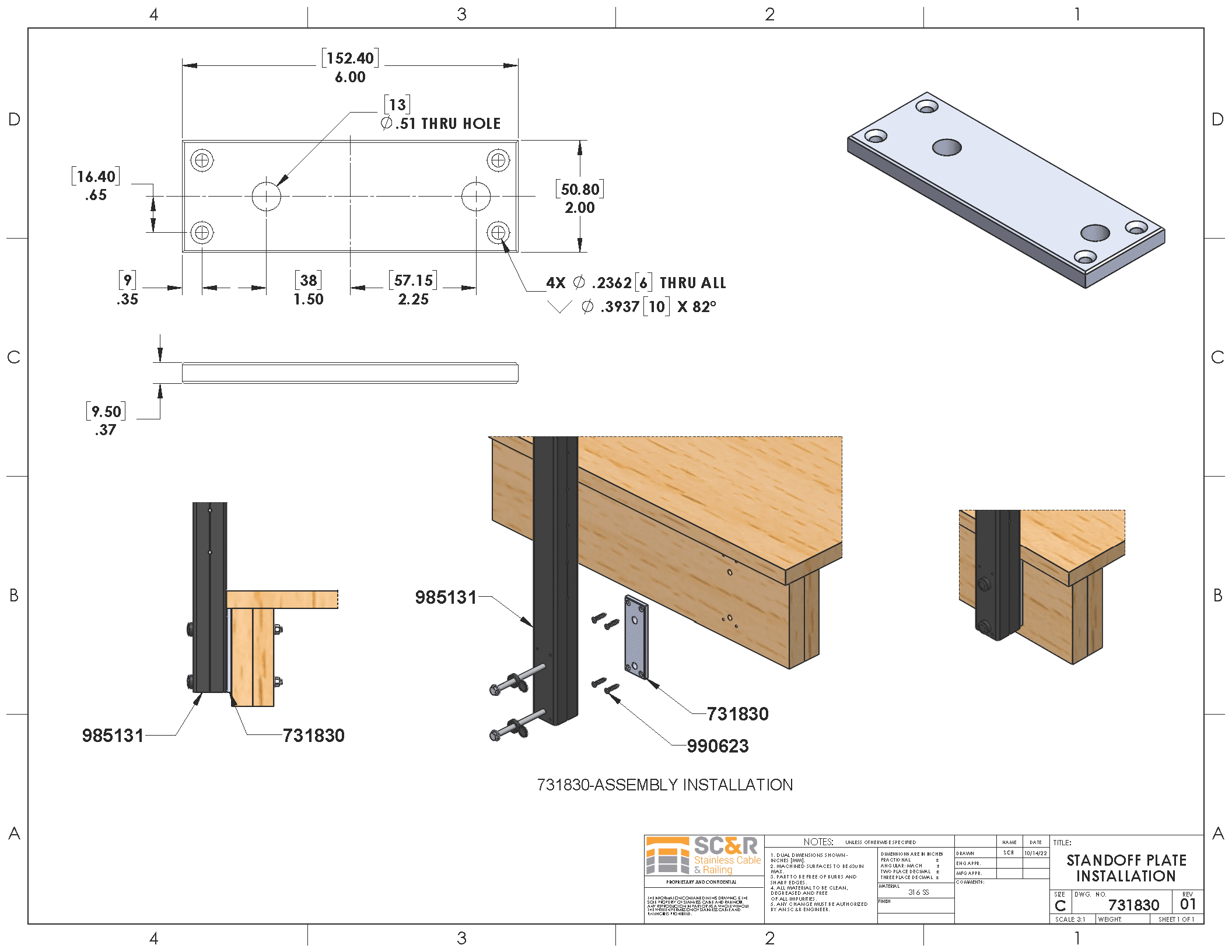 This plate is used for drip-edge flashing clearance. Create distance between your posts and deck to keep from crushing the drip-edge. Made with 316 Grade Stainless Steel.