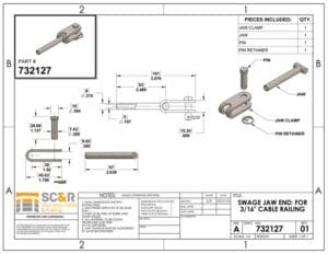 The SWAGE JAW END fitting is the terminal end of the CLASSIC JAW ASSEMBLY. This Assembly requires: 1 CLASSIC JAW TURNBUCKLE , CABLE , and 1 SWAGE JAW END. The number of cable runs is determined by post height. 3″ cable spacing is recommended.