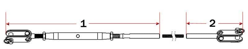 See number “2” in the above drawing to see how the SWAGE JAW END is used in the wire rope cable assembly.