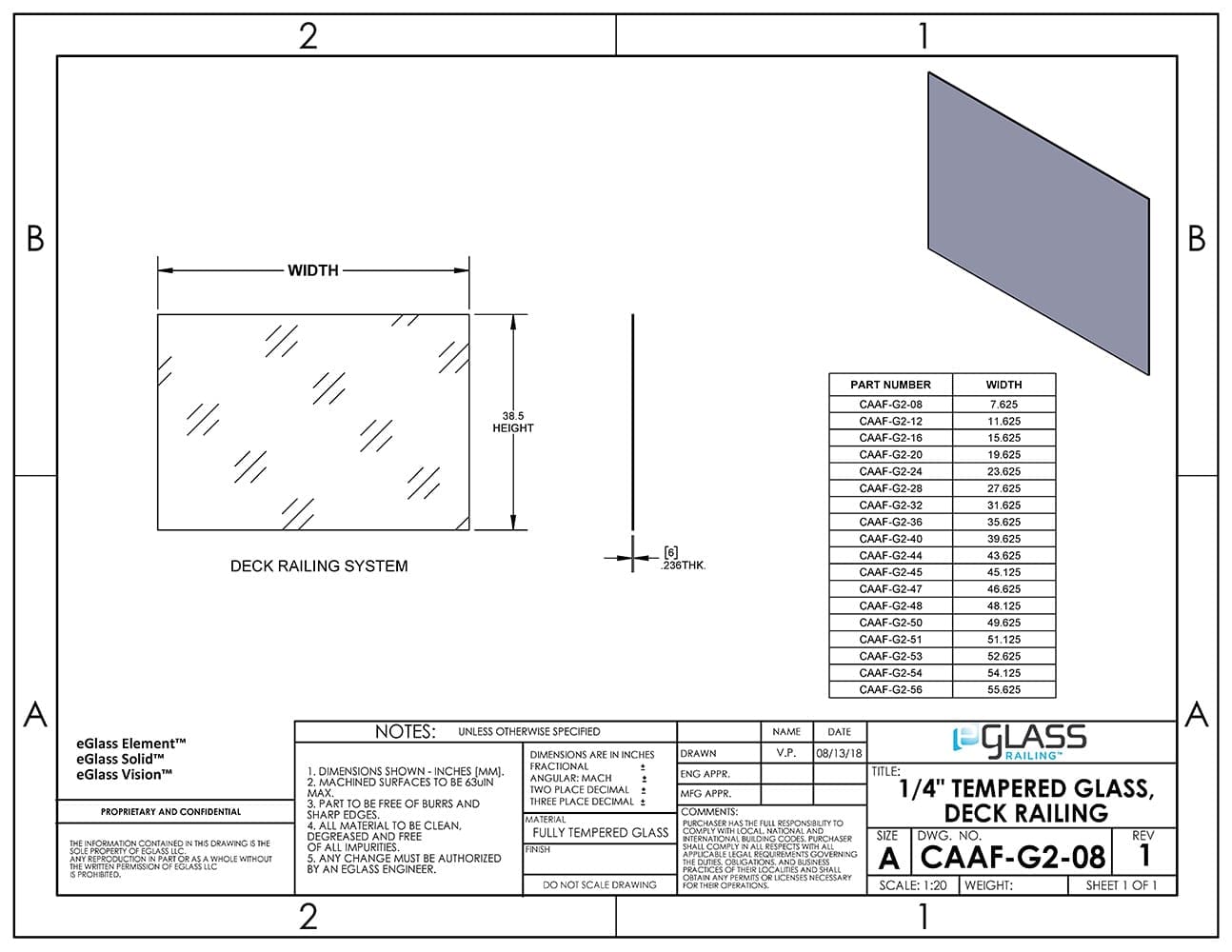 • 1ea tempered glass panel per ordered variation