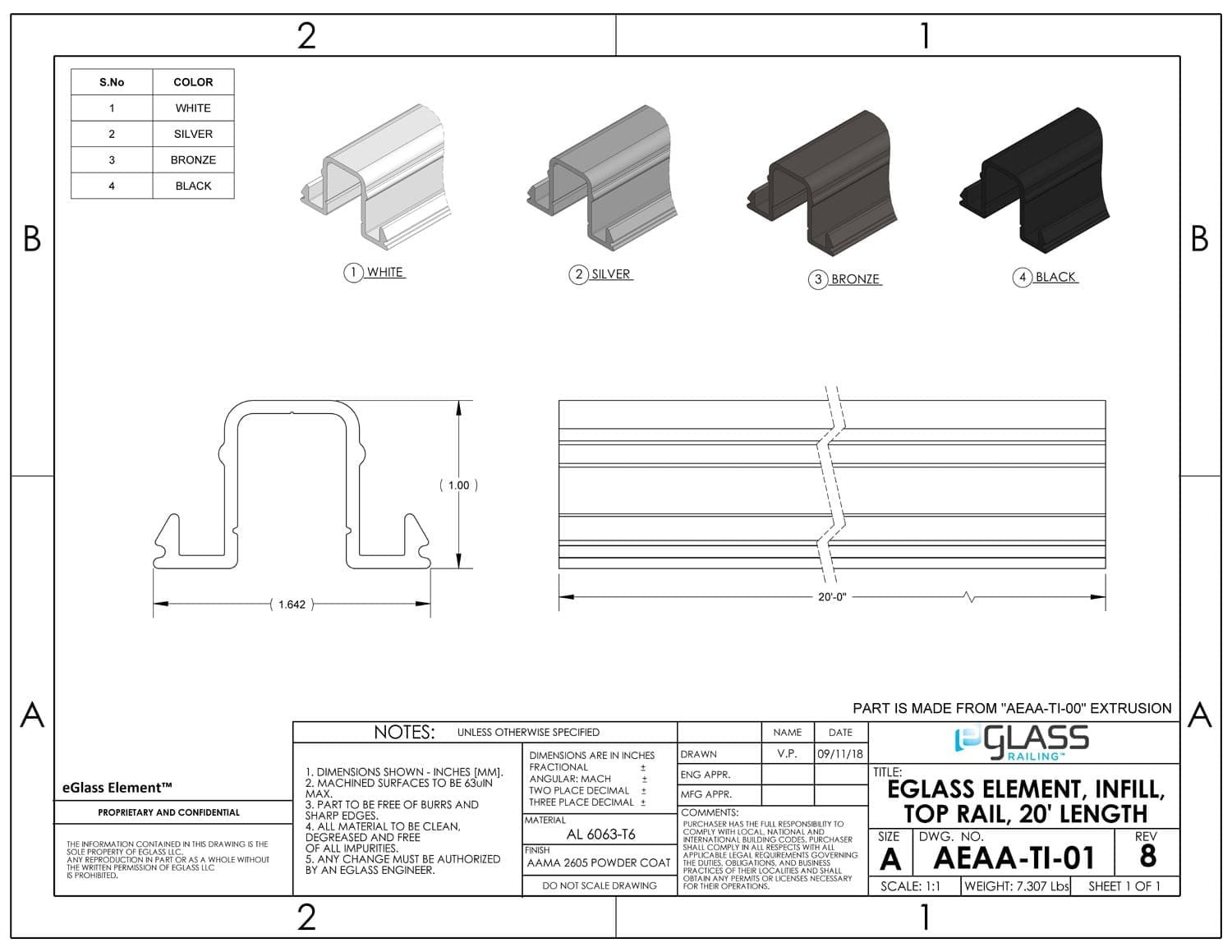 | AL 6061-T6 Alloy | AAMA 2605 Powder Coat | Black, Bronze, Silver, White | 1.5″ x 1″ x 20′ | 10-year (5-year Florida) |