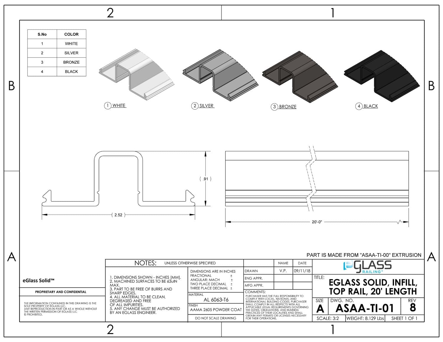 | AL 6061-T6 Alloy | AAMA 2605 Powder Coat | Black, Bronze, Silver, White | 2.5″” x 1″” x 20′ | 10-year (5-year Florida) |
