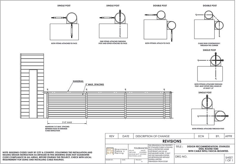 | Hole Options | Drilled for 1/8in Cable, Drilled for 3/16in Cable |